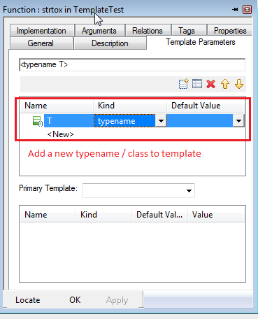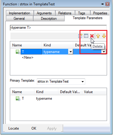 - Delete the Template which appeared on the upper area. This will allow us to specialize this typename.